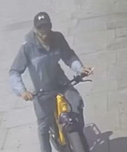 Officers want to identify the two men seen in CCTV footage. The first suspect was riding a distinctive yellow electric bike. He is described as a Black man, around 6ft tall, slim build, and thought to be in his 30s. He wore a grey and black tracksuit, black trainers and a black baseball cap.